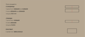 Izmēri Cena par loksni (ar PVN) Komentārs